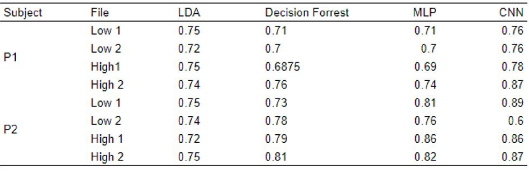 Evaluation of different machine learning (ML) and deep learning (DL) classifiers for P300 signals in a target vs non-target paradigm.